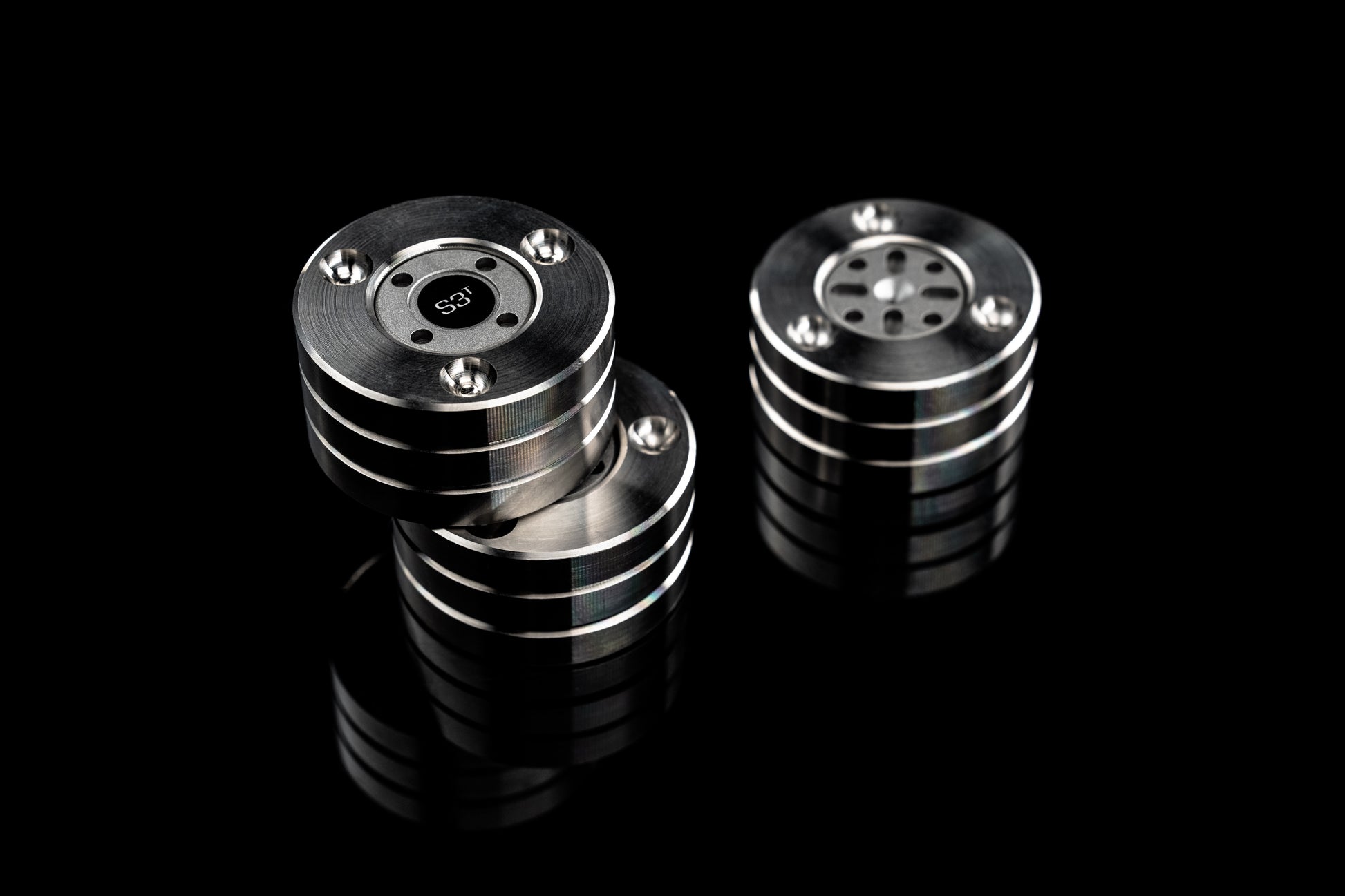 Consists of three discs and ball bearings that focus vibrations into tiny contact points, allowing unwanted resonances to escape and be converted into heat — ensuring effective mechanical grounding. Engineered with a two-fold purpose in mind; to visually blend with any component they’re meant to work under, and to support it, so that its true potential can be unlocked.