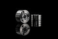 The basic variant features polished stainless-steel discs. The shaft, the center piece holding the parts in place, deliberately allows for slight horizontal and lateral movement, is also made of stainless steel. The critical ball bearings between the discs are made of titanium.