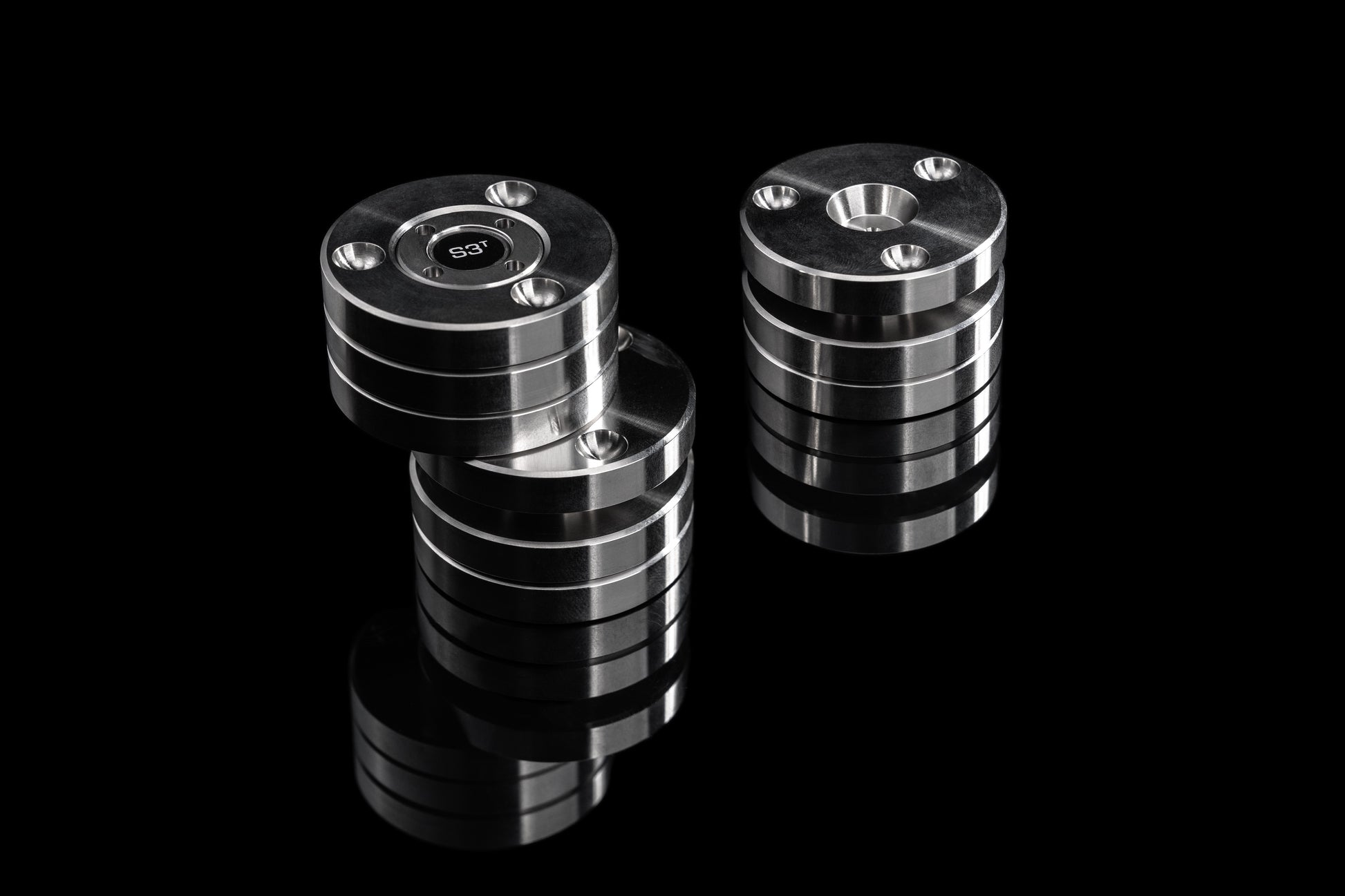 Consists of three discs and ball bearings that focus vibrations into tiny contact points, allowing unwanted resonances to escape and be converted into heat — ensuring effective mechanical grounding. Engineered with a two-fold purpose in mind; to visually blend with any component they’re meant to work under, and to support it, so that its true potential can be unlocked.