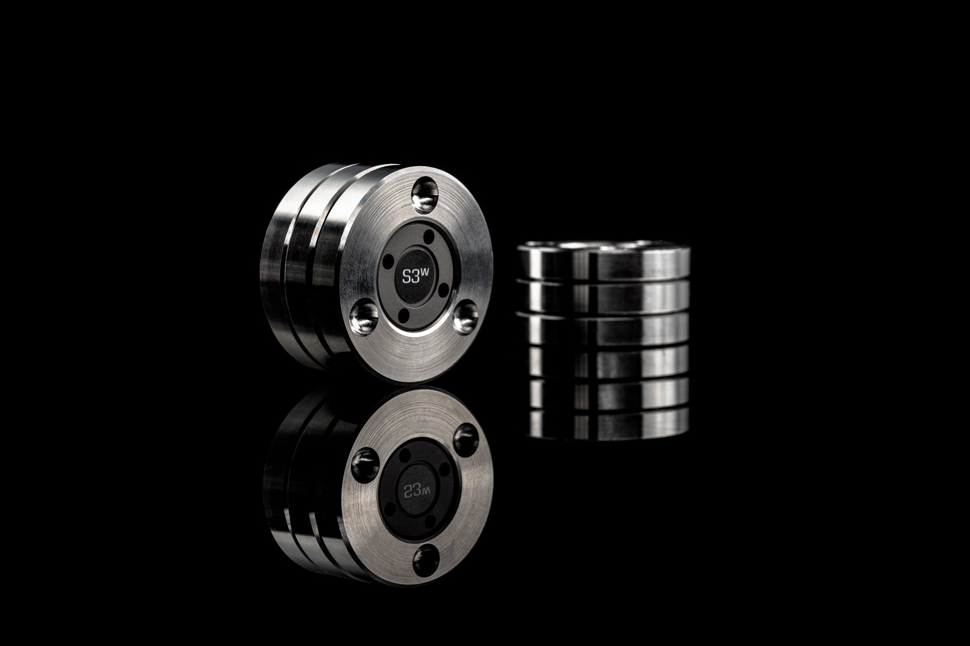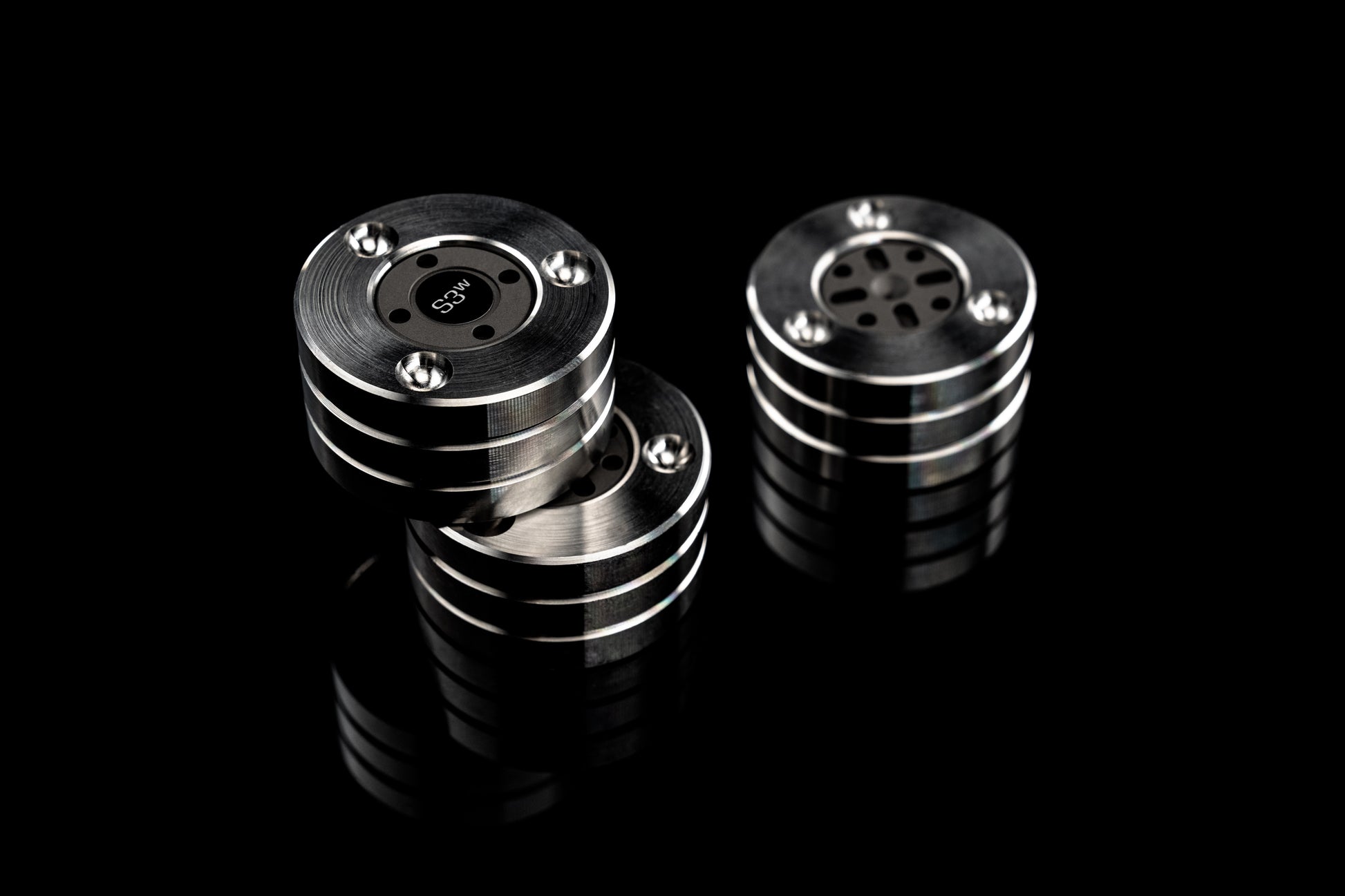 Consists of three discs and ball bearings that focus vibrations into tiny contact points, allowing unwanted resonances to escape and be converted into heat — ensuring effective mechanical grounding. Engineered with a two-fold purpose in mind; to visually blend with any component they’re meant to work under, and to support it, so that its true potential can be unlocked.